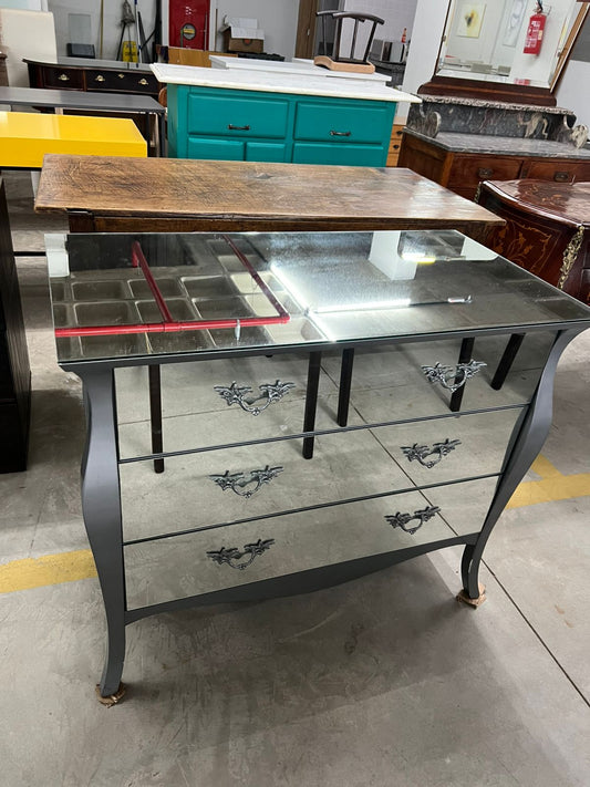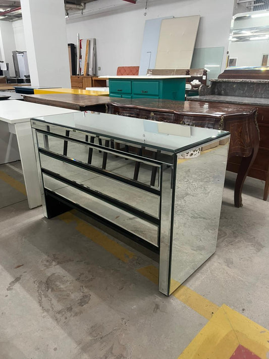 Comoda / Mesa de cabeceira espelhada com 3 gavetas