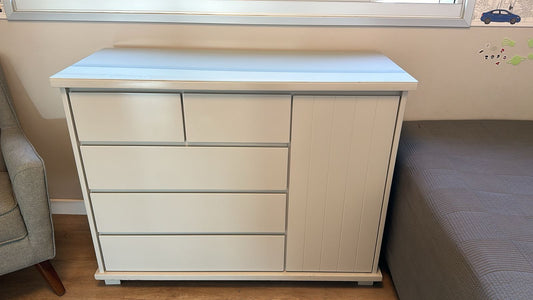 Cômoda Madeira e Tampo em Vidro Detalhes