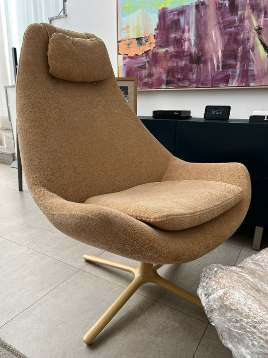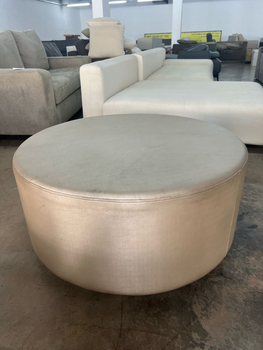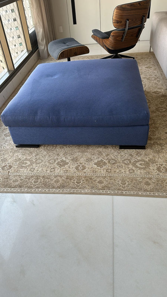 Poltrona jangada e puff estofados em tecido off white Micheliny Martins