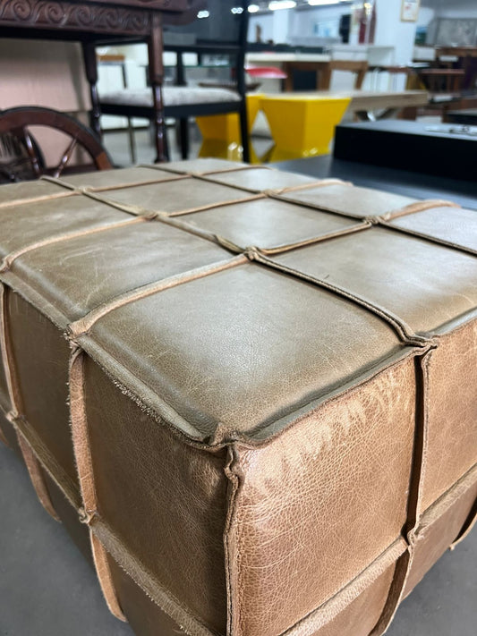 Banqueta em Couro Natural Marrom e Estrutura Inox