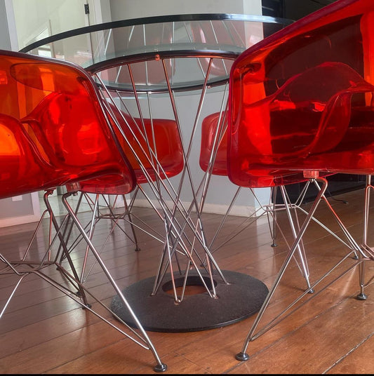 EsgotadoConj. cadeiras vermelhas acrilico