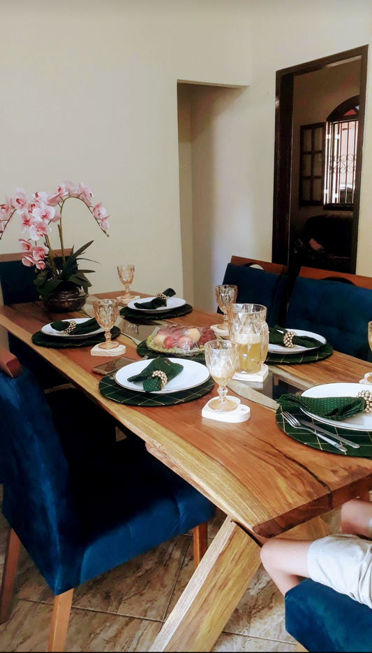 Conjunto mesa + 4 cadeiras de linho impermeável