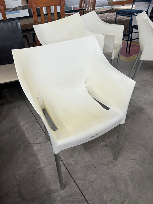 Conj. 4 cadeiras com pés em alumínio e assentos anatômicos em plástico na cor branca