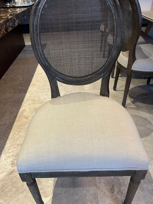 Cadeira madeira ebanizada e estofado em linho Móveis América