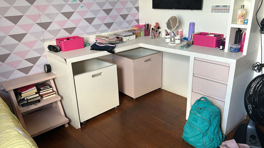 Móvel planejado quarto infantil com escrivaninha e gaveteiro