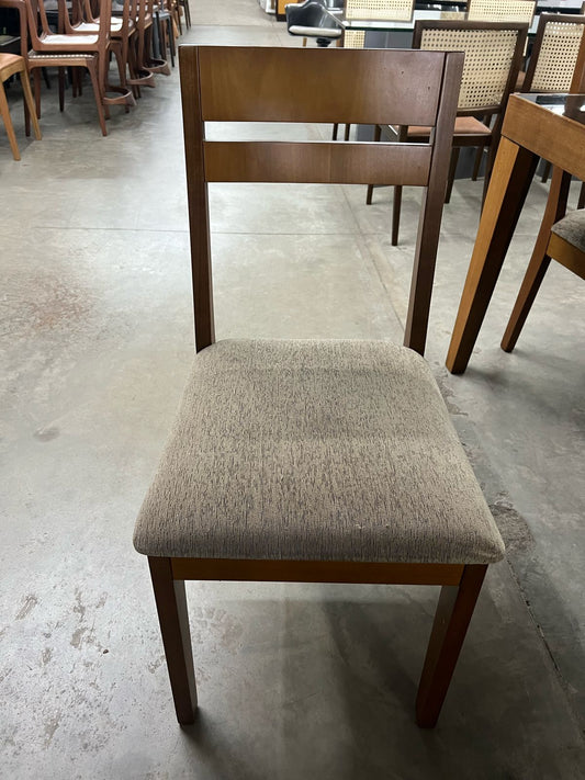 Mesa com tampo de vidro retangular e pé de madeira + 6 cadeiras