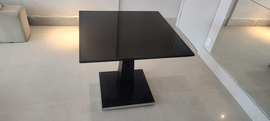 Mesa lateral madeira ebanizada como tampo em vidro laqueado preto Prodomo