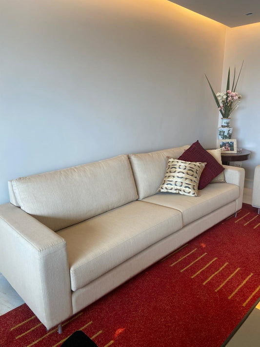 Sofá Liones com 2 lugares Almofadas Soltas e Tecido Suede Bege