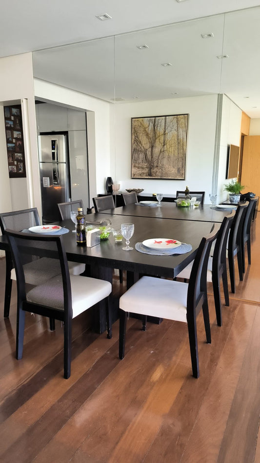 mesa de jantar ÁureaCarvalho Zaino e tampo cristal laqueado Lider