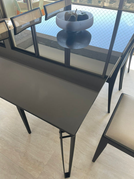 Mesa de jantar retangular com tampo de vidro laqueado (32%)