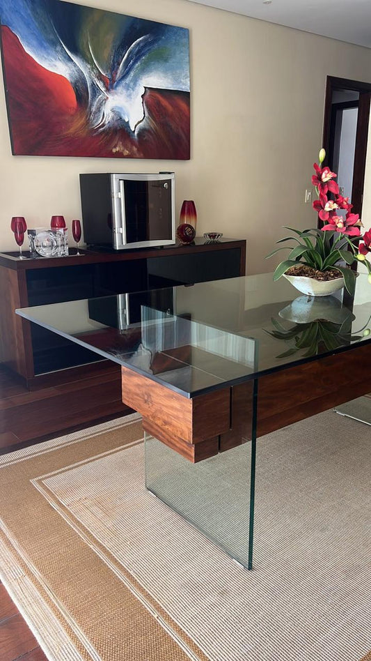 Mesa laqueada com vidro - Marca: D/IT Casa