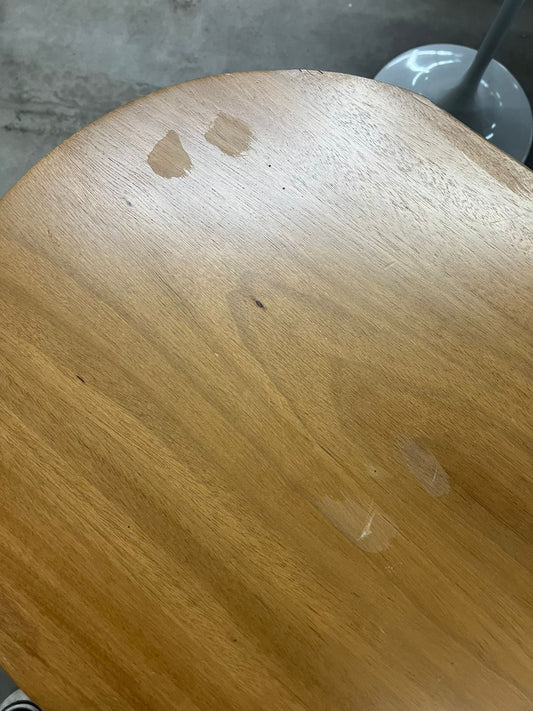 Mesa estilo bar com tampo em madeira maciça e pés de aço preto