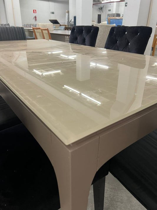 Mesa de Jantar 8 Lugares Base em Madeira Vidro 15mm