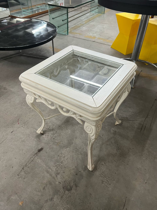 Mesa lateral branca com tampo de vidro