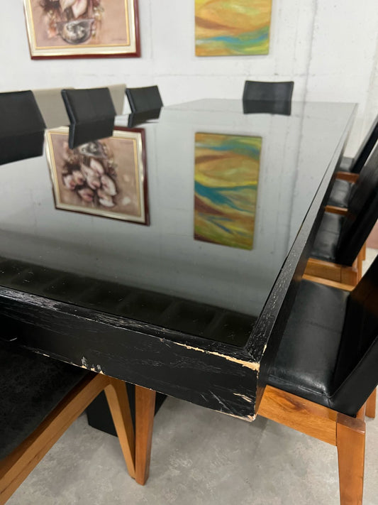 Mesa ebanizada com vidro laqueado preto