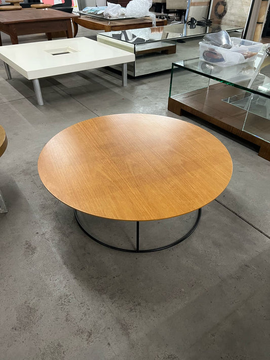 Par de mesas de centro redonda pés de ferro tampo de madeira