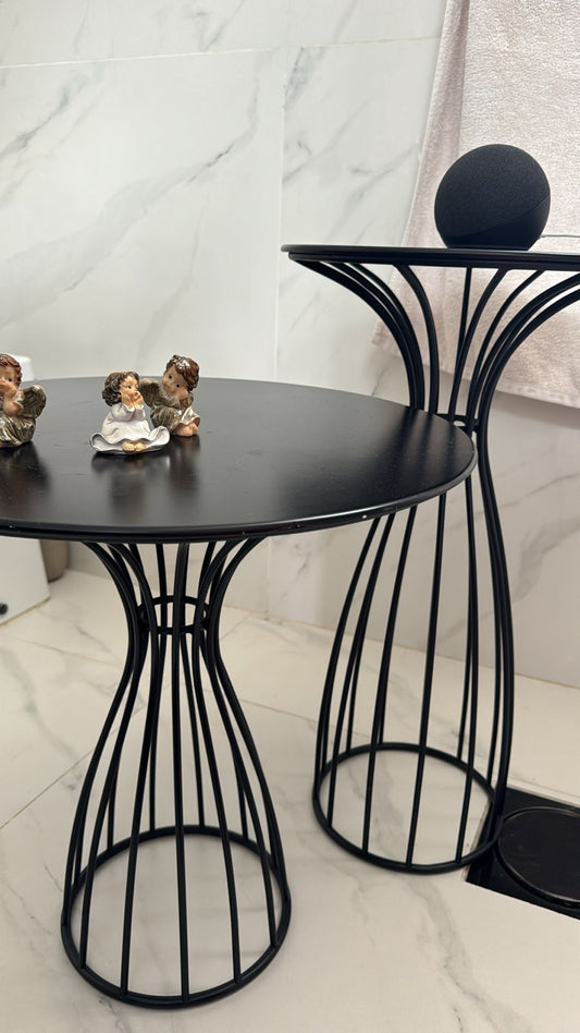 CONJ. MESA LATERAL MARI ESTRUTURA DE.METAL - BASE/TAMPO CORA LACA PRETA FOSCA