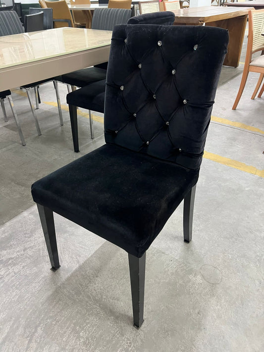Cadeira de veludo preta, captonê com cristais swarovski, pés de madeira laqueada preta