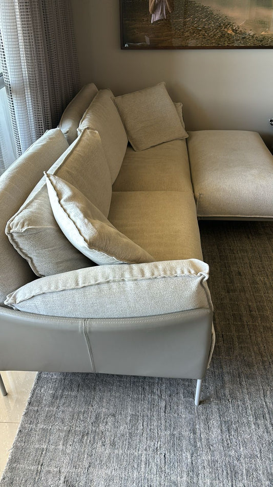 Sofá Modelo Chamonix em Couro Natural + Tecido - Nicoletti (Italia)