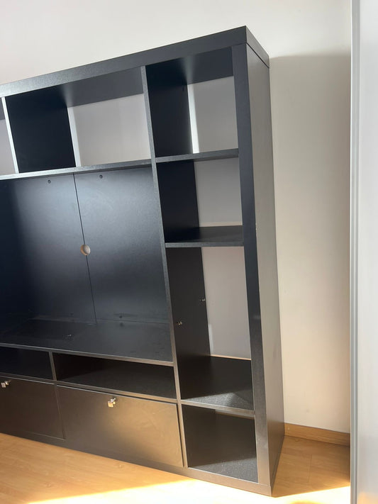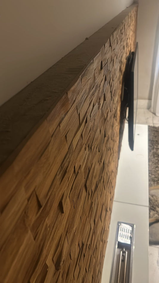 Painel de madeira para tv dividido em 3 partes com a emenda camuflada