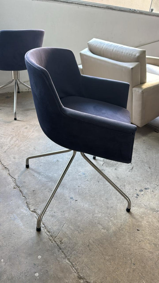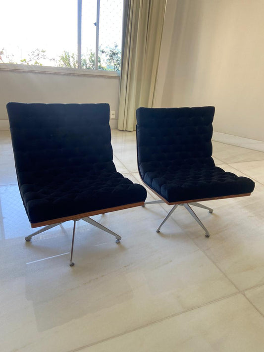 Poltrona capitonada giratória em veludo preto com base de madeira