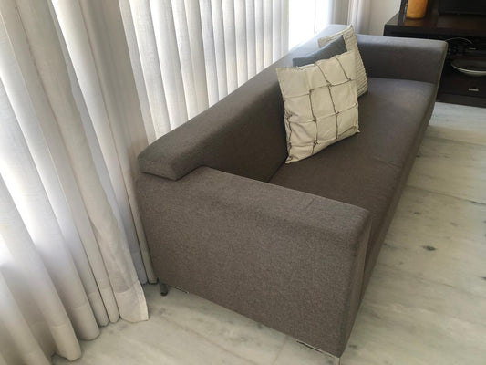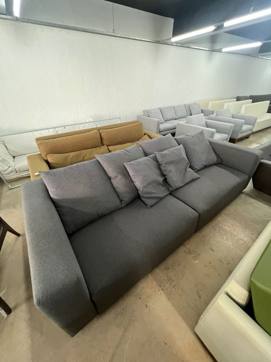 Sofá três lugares em linho cinza com almofadas do encosto removíveis e capas com zíper (38%)
