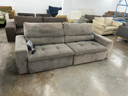 Sofá retrátil elétrico na cor cinza Maria Alice
