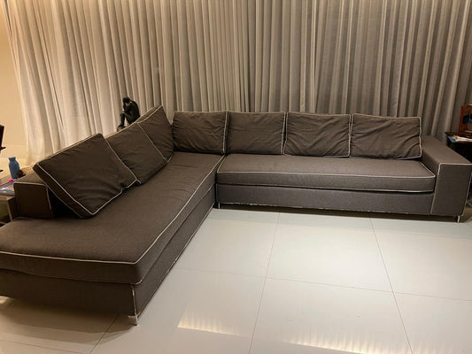 Sofá em L de duas partes cinza com costura branca Tom sobre Tom