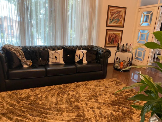 Sofá 4 lugares linho marrom Maria Alice decorações (38%)