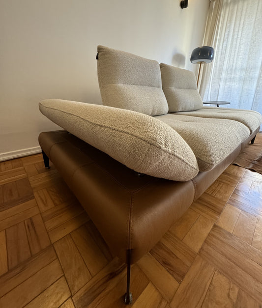 Sofá Modelo Chamonix em Couro Natural + Tecido - Nicoletti (Italia)