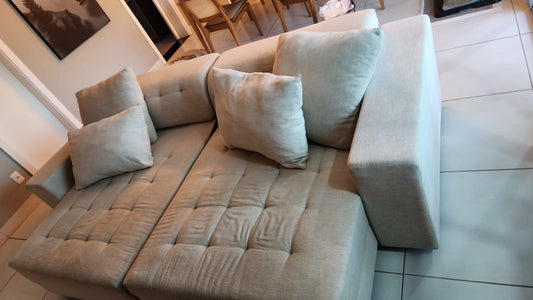 EsgotadoSOFÁ TECIDO TRAMA ABERTA BEGE INSIDE