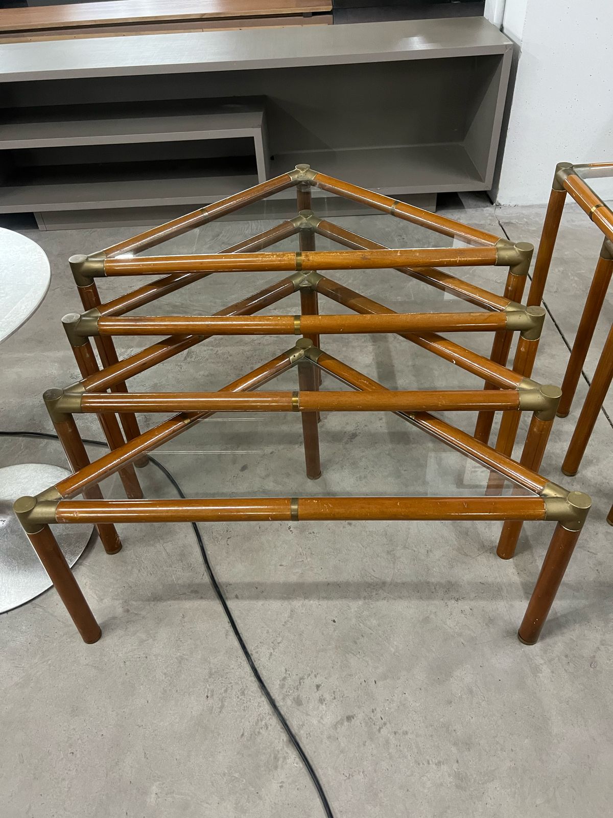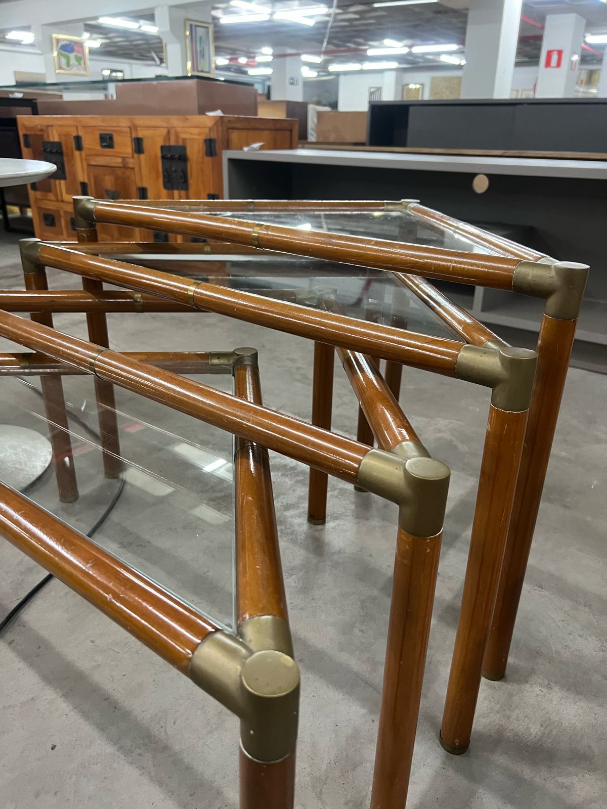 Conj. 4 mesas lateral de madeira triangulares com tampo de vidro
