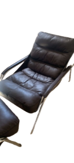 Poltrona maggiolina couro e pluma de ganço marron+ banqueta